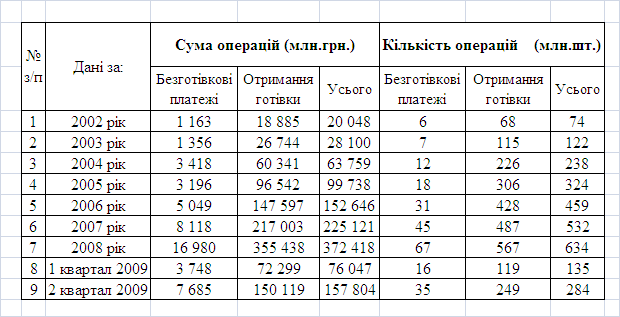 Безготівкові розрахунки за допомогою пластикових карток: національна та