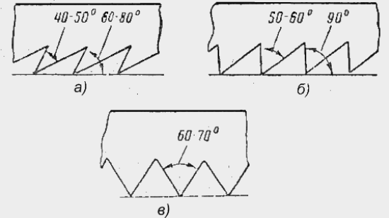 • рубанки твердого дерева - 60 °;