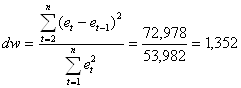 Так как dw попало в интервал от d2 до 2, то по данному критерию можно сделать вывод о