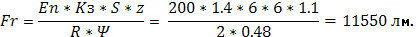 використання світлового потоку ή=48%.