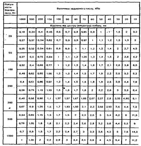 потужності ядерного вибуху і характеру рельєфу місцевості. Місцевість