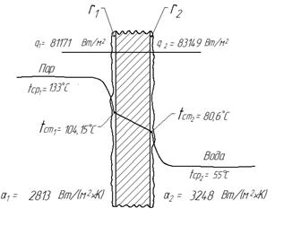 tк = 96 0С Вода tн = 40 0С