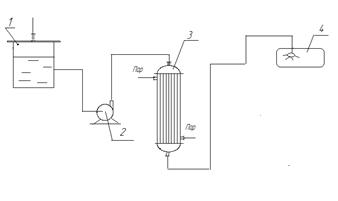 нагревание воды осуществляется в горизонтальном теплообменнике теплотой