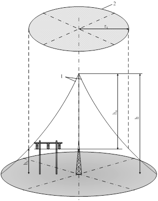 поражения располагается симметрично оси молниеотвода на высоте защищаемого