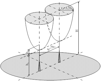 защиты протяжённых объектов используется несколько молниеотводов,