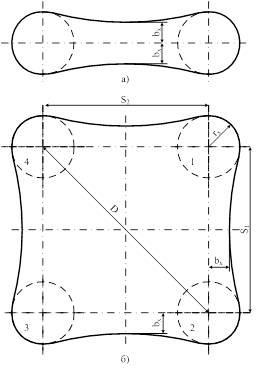 имеет очертания, приведённые на рис. 1.3, а, б.