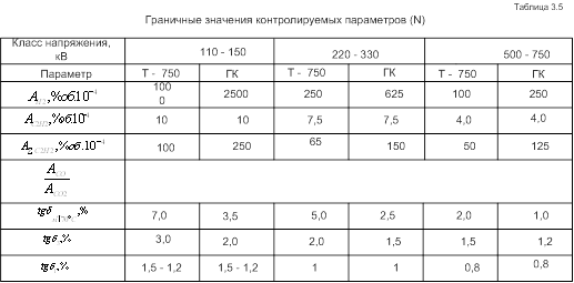 ввода 110 кВ с маслом типа ГК приведены в таблицах 3.11 и 3.12.