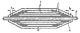 - дополнительные уравнительные обкладки; 3 -токоведущая труба; 4 - слои бумаги;