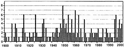практически по 8 тайфунов в год. Из них 504 тайфуна, или почти 80%, приходятся