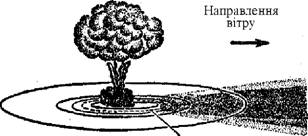 У результаті ядерного вибуху місцевість заражається радіоактивними