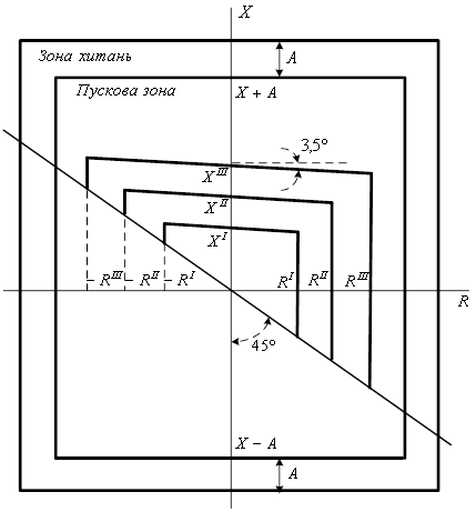 захист типу ПДЕ від міжфазних к.з. має дев‘ять вимірних дистанційних органів,