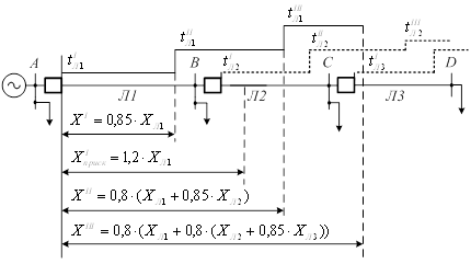 максимального струмового захисту із захистами суміжних елементів за часом