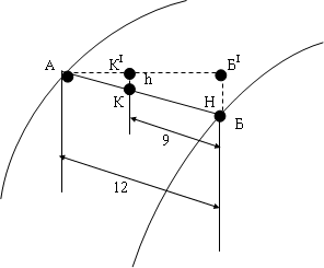 горизонталях, складає 5‰ при висоті перерізу рельєфа 2,5м. Довжина АВ на карті