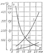 (кривая 2) и активного электрического сопротивления (при частоте 50 Гц) единицы