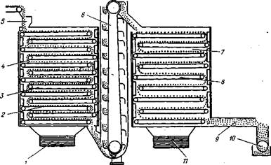 бункера 7 поступают в барабан 10 обескрыливателя через отверстие,