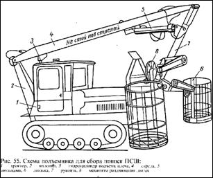наклона подъемника с поднятым сборщиком должен быть не более 5 градусов;