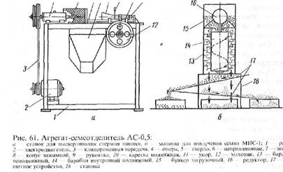 15, ворошилки 16, семесбор-ника обескрыленных и неочищенных.семян 19 и решет