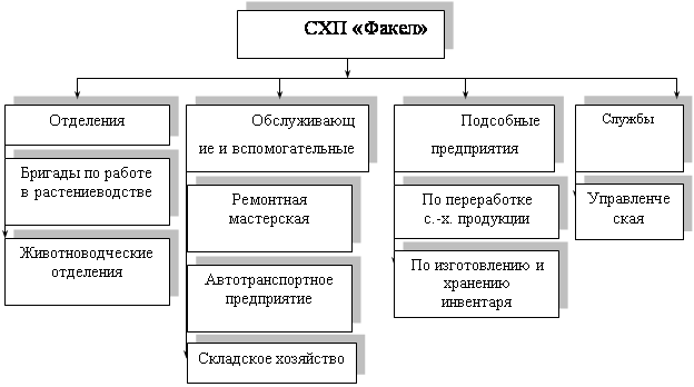представлена схема организационной структуры СХП «Факел».