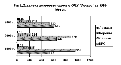 2. Состав и численность скота в ОПХ "Омское"