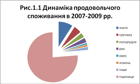основному переважає пшениця 70-78%, обсяг фонду споживання цієї культури