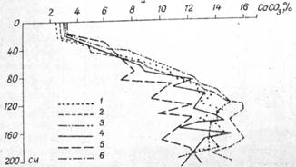 (обилие изначальных карбонатов в нижней части профиля) и рецентные