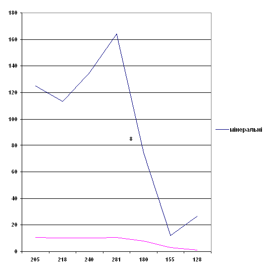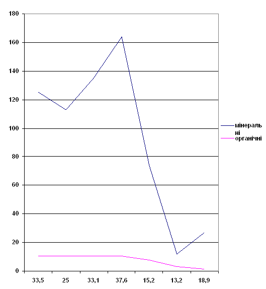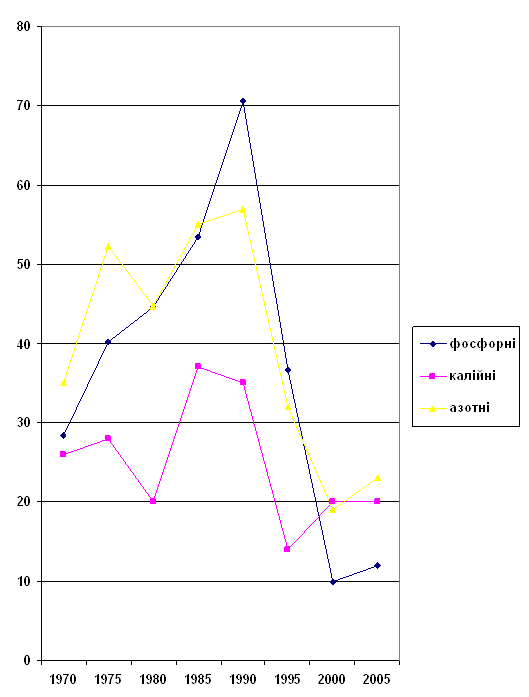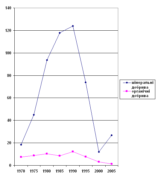 внесенні мінеральних добрив. Як видно з графіка 5 в період з 1996 по 2005 роки