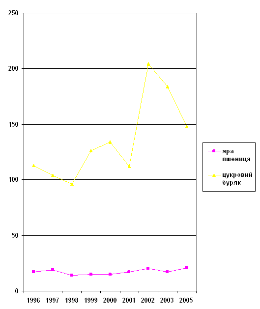 пшениці, а врожайність цукрового буряку дещо втрачається. Отже можемо зробити