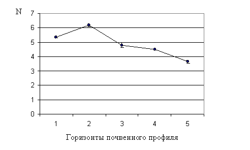 каждом горизонте профиля. Таким образом, Nолиг. была меньше, чем Nсапр.: в первом горизонте в