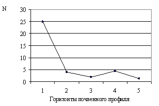 сапротрофных бактерий уменьшалось от первого горизонта к третьему – от