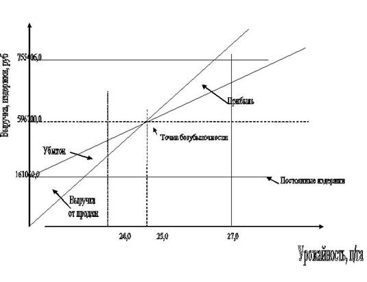 График безубыточности производства ячменя.