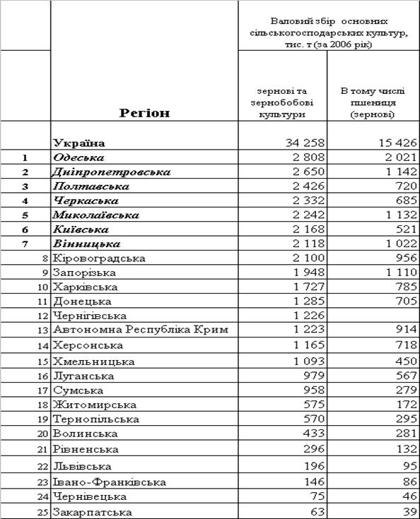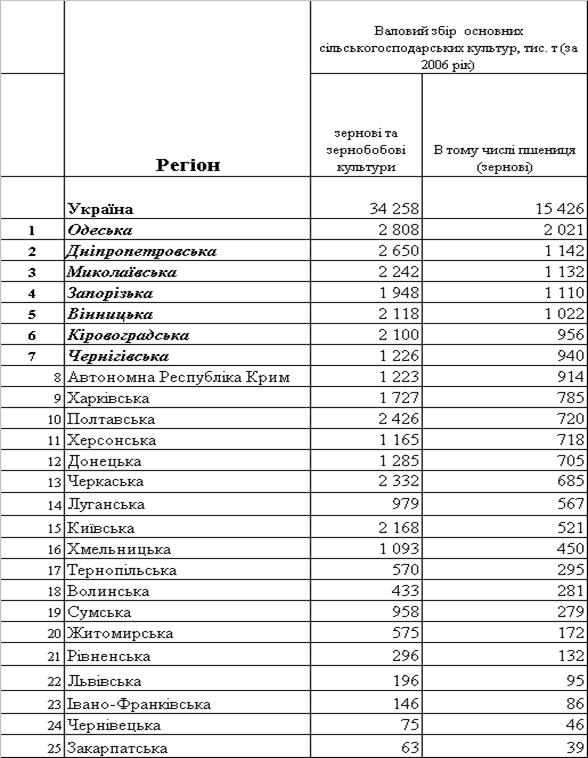 місце по виробництву зерна, цукрових буряків, цукру-піску, молока і ін.