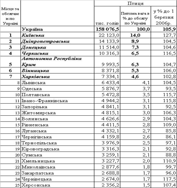 птиці по регіонах станом на 1 березня 2007 року