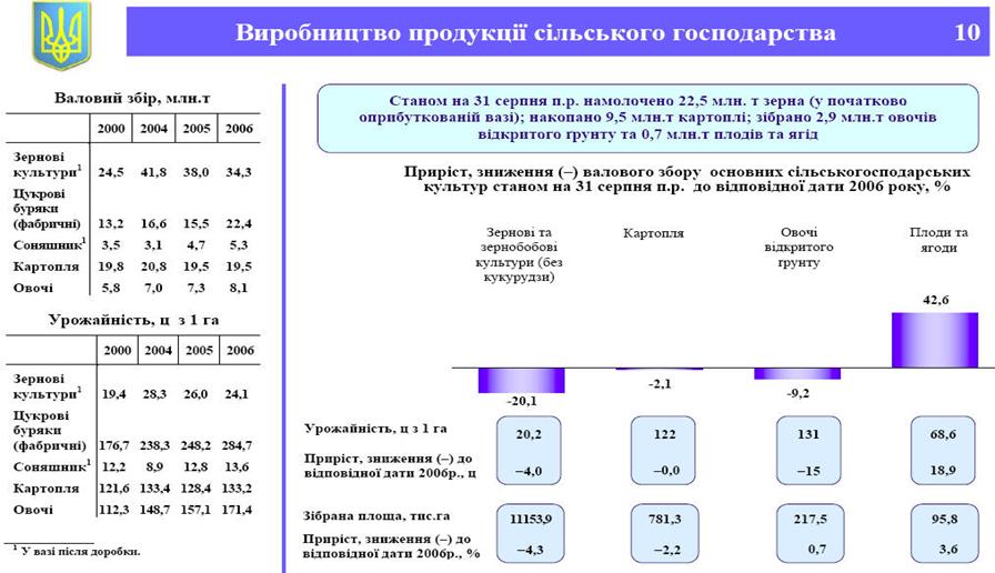 продукції рослинництва, особливо зернових культур.