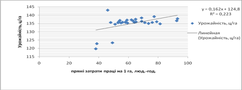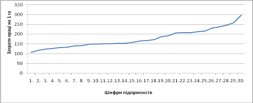 витрат на 1 га (грн.), оплатою праці на 1 люд.-год., внесення мінеральних