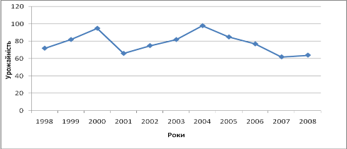 цілому. Рівень урожайності відображає вплив економічних і природних умов, в