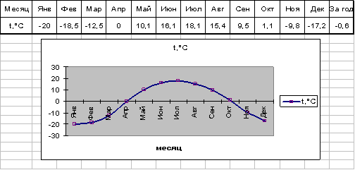 Средне месячная и среднегодовая температура воздуха.