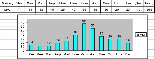 Среднемесячное и среднегодовое количество осадков приведённое