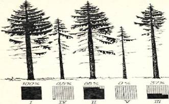 конкуренции у деревьев, более позднее наступление их дифференциации.