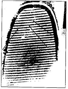 (випуклості) на поверхні зліпку, забарвлені чи незабарвлені ділянки у сліді