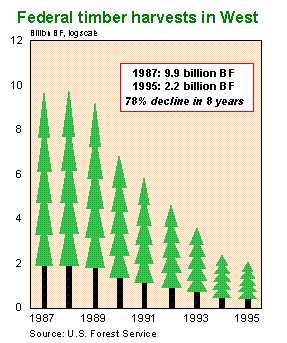 общая площадь лесного покрова стабильно уменьшается, спрос на продукцию лесного