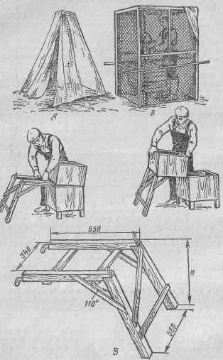 Палатки для осмотра пчел: А - складная марлевая; Б - из