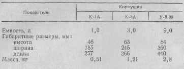 Основные размеры потолочных кормушек даны в табл.