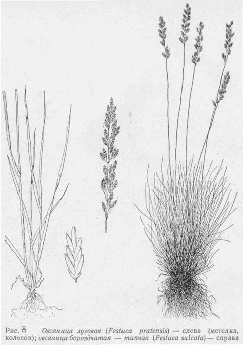пользуется овсяница луговая и бороздчатая, или типчак (рис.8).