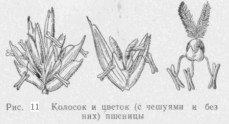 Выше колосковых чешуи на оси располагаются цветки. Их число имеет важное