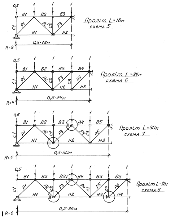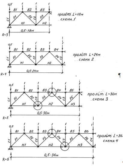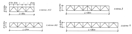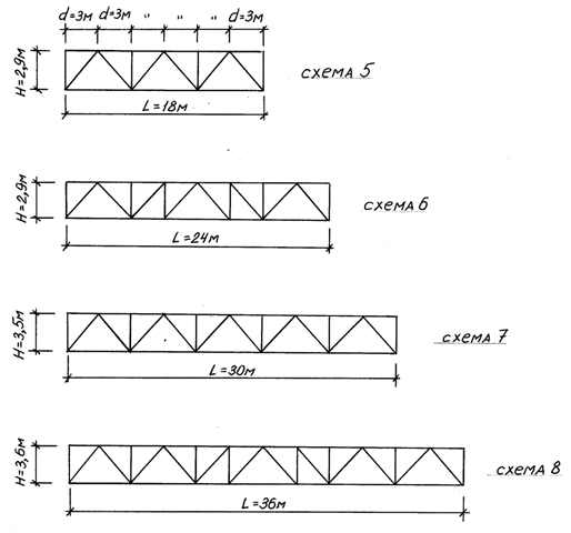 геометричні схеми ферм для різних прольотів і форм поперечних перерізів