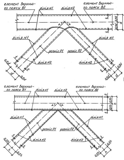 верхніх і нижніх поясів стропильних ферм. На плані в’язей вони видні “з ребра”