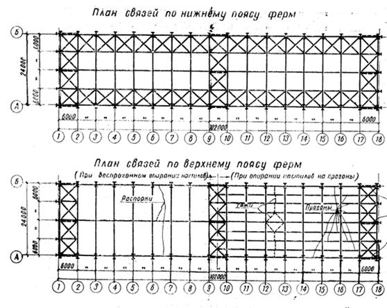 в’язі по верхнім поясам стропильних ферм. Поздовжні в’язі влаштовують за всією