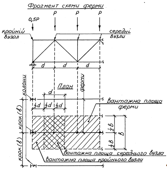 і тому показані пунктирною лінією. За довжиною прольоту ферми вертикальні в’язі