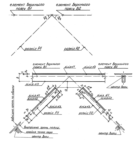 і верхнього поясу і=1,5% (при виконанні розрахунків цей уклін можна не