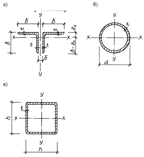 Їх поперечний переріз може мати вигляд одиночних кутиків, парних кутиків або